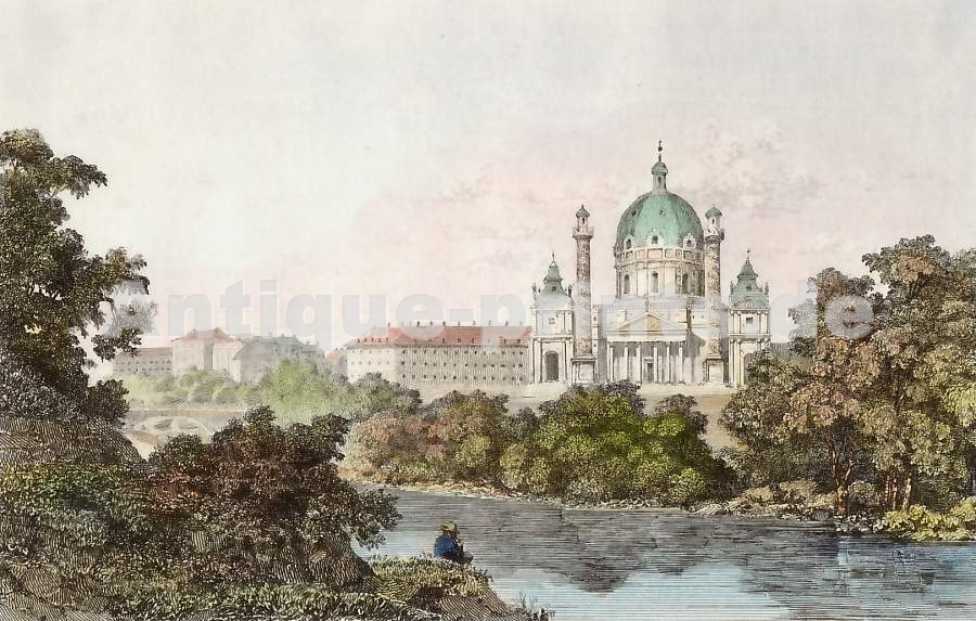 Austria. Original steel engraving, drawn by C. Stanfield, engraved by W. Miller. 1832. Good condition. Small margins, as issued. Hand-coloured. 15x10,5cm. Matted.