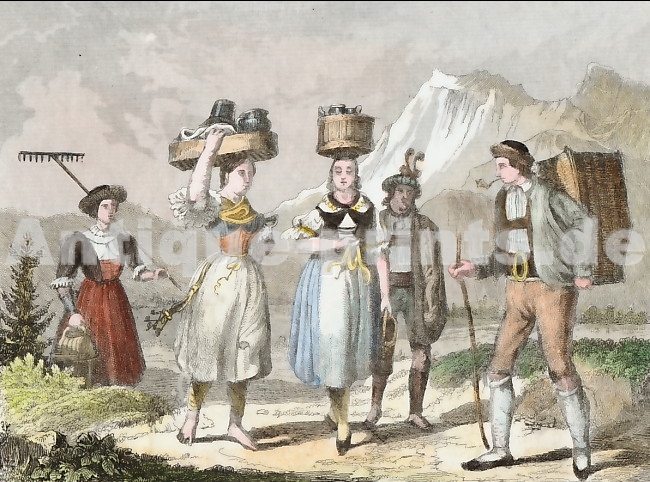 Autriche. Gravure sur acier de Lemaître. 1842. Très bon état. Aquarellée à la main. 17x9cm. Montée sous passe-partout.