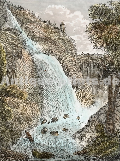 Grèce. Gravure sur acier, gravée par E. Finden d´après C. Stanfield. 1832. Très bon état. Aquarellée à la main. 14,5x9cm. Montée sous passe-partout.