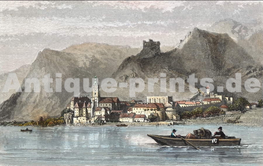 Autriche. Gravure sur acier, gravée par J. J. Hinchliff d´après J. Alt. 1841. Très bon état, toutes petites marges. Aquarellée à la main. 15,5x10cm. Montée sous passe-partout.