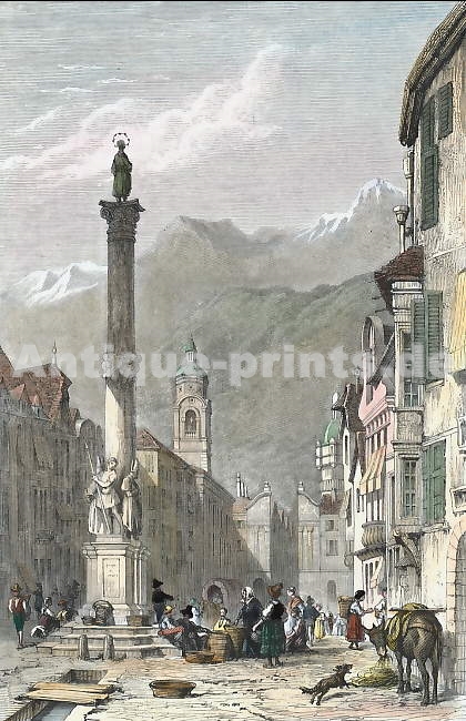 Austria. Original steel engraving drawn by W. H. Bartlett, engraved by J. Hinchliffe. 1842. Very good condition. Hand-coloured. 18x12cm. Matted.