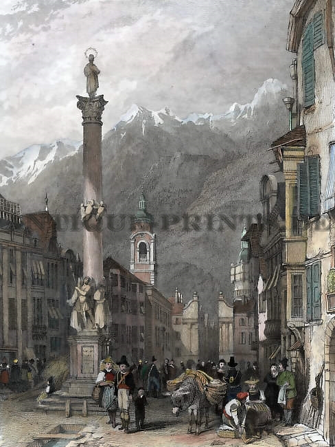 Austria. Original steel engraving drawn by Lauterbach, engraved by T. Heawood. ca 1850. Very good condition. Decorative border. Hand-coloured. 21x14cm. Matted.