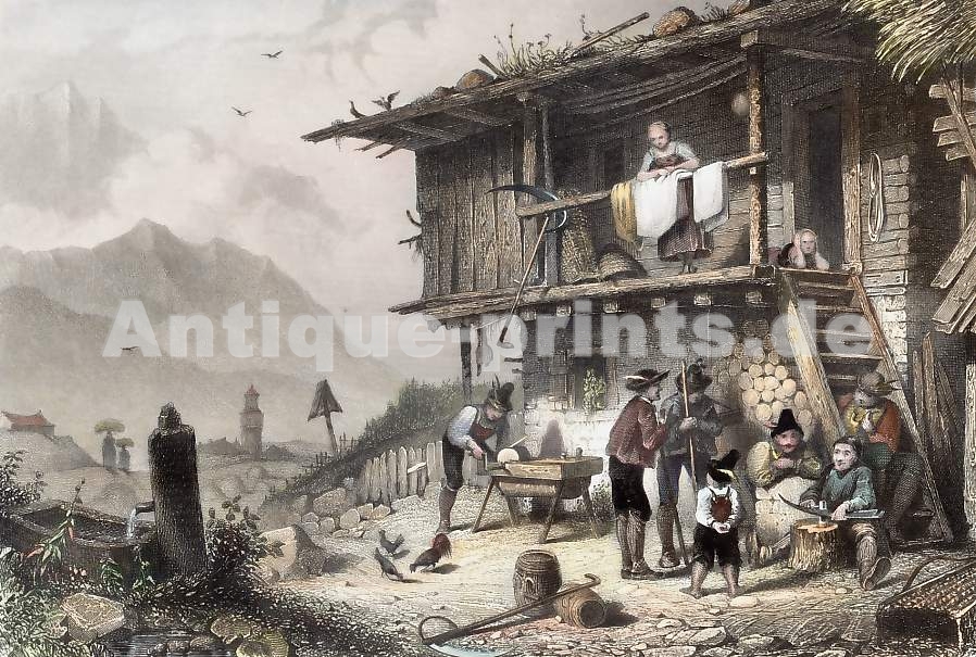 Syria. Original steel engraving, engraved by S. Lacey after W. H. Bartlett. 1836. Very good condition. Hand-coloured. 18,5x12,5cm. Matted.