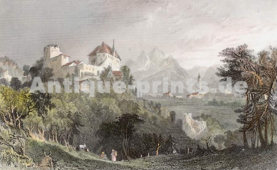 Austria. Original steel engraving drawn by J. Alt, engraved by H. Winkles. 1841. Very good condition. Hand-coloured. 16x10cm. Matted.