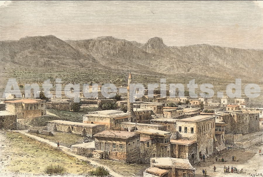 Greece. Original steel engraving. Bibliograph. Institut in Hidlburghausen. 1854. Very good condition. Hand-coloured. 15x10cm. Matted. The caves are actually located in Antiparos, a small island near Paros.