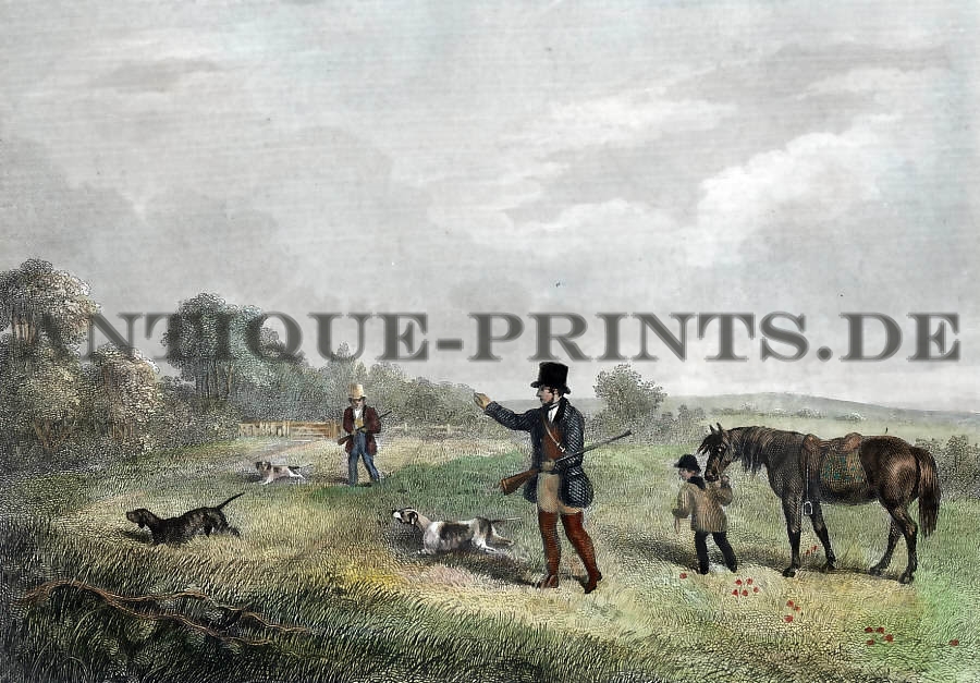Jagd. Stahlstich von J. Westley nach J. Boult. 1851. Guter Zustand. Handkoloriert. 15x10,5cm. Mit Passepartout.