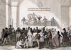 Herculaneum. Kupferstich von C. Oratij nach G. Morghen. 1765. Sehr guter Zustand. Text auf der Rückseite. Handkoloriert. 15x8,5cm. Mit Passepartout.