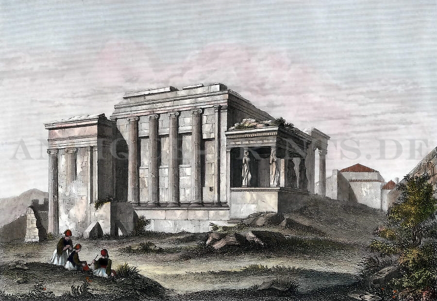 Altes Griechenland. Chromolithographie. 1909. Sehr guter Zustand. 24,5x18cm. Mit Passepartout.