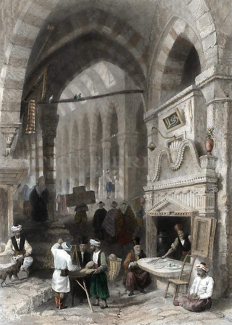Holy Land. Original wood engraving, engraved by Armand Kohl after T. Taylor. 1884. Good condition. Hand-coloured. 19x13cm. Matted.