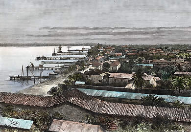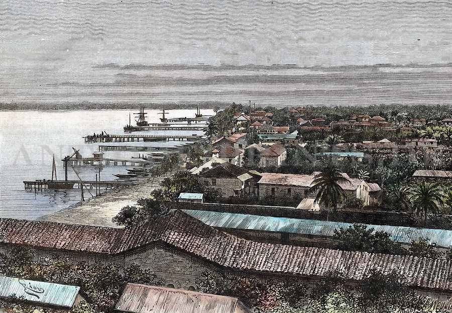 Empire Ashanti (Ghana). Gravure sur acier par Lemaître. 1848. Très bon état. Aquarellée à la main. 16x10,5cm. Montée sous passe-partout.