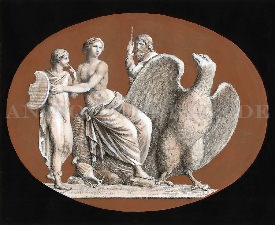 Odes d´Anacréon. Gravure au trait, gravée par H. G. Chatillon d´après A.-L. Girodet. 1825. Très bon état. Aquarellée à la main. 17,5x15cm. Montée sous passe-partout.