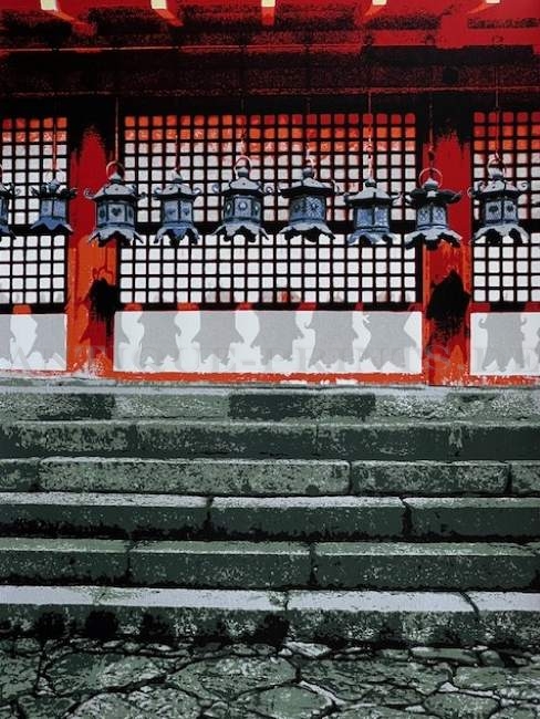 Japon. Sérigraphie de Hideaki Kato (1954-), ca 1990. Signée, datée et justifiée 16/300. Très bon état. Aquarellée à la main. 49x35cm.