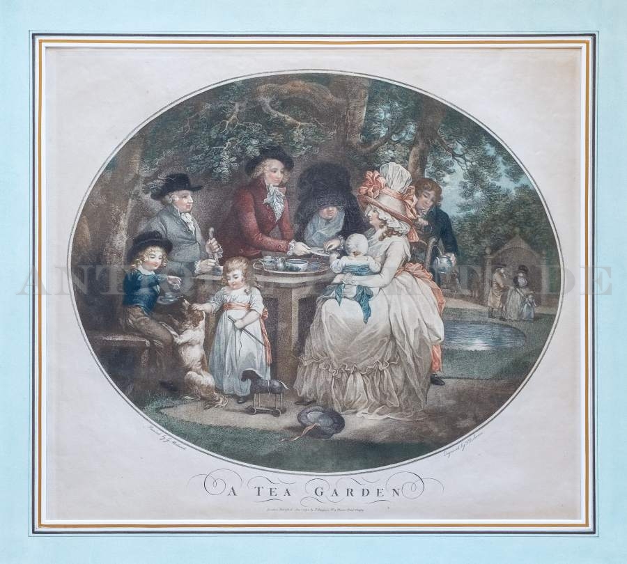Royaume-Uni. Gravure au pointillé en couleur, gravée par François David Soiron d´après George Morland. 1790. Très bon état. Aquarellée à la main. 49x40cm. Montée sous passe-partout. Pendant de