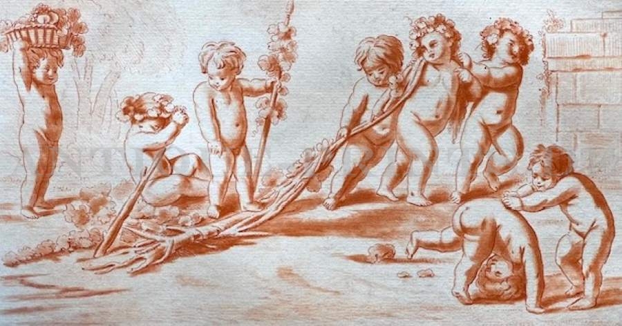 Gravure, Stich, Engraving, Genre, Amours, Putti,