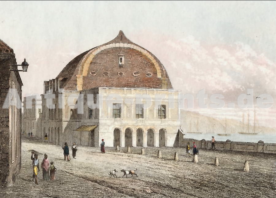 Tahiti. Original steel engraving drawn by Danvin, engraved by Joliot. 1836. Very good condition. Hand-coloured. 14x9cm. Matted.