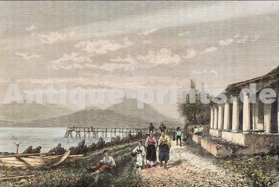 Lebanon. Original steel engraving, engraved by W. Finden after J. M. W. Turner. 1852. Very good condition. Hand-coloured. 13x9cm. Matted.