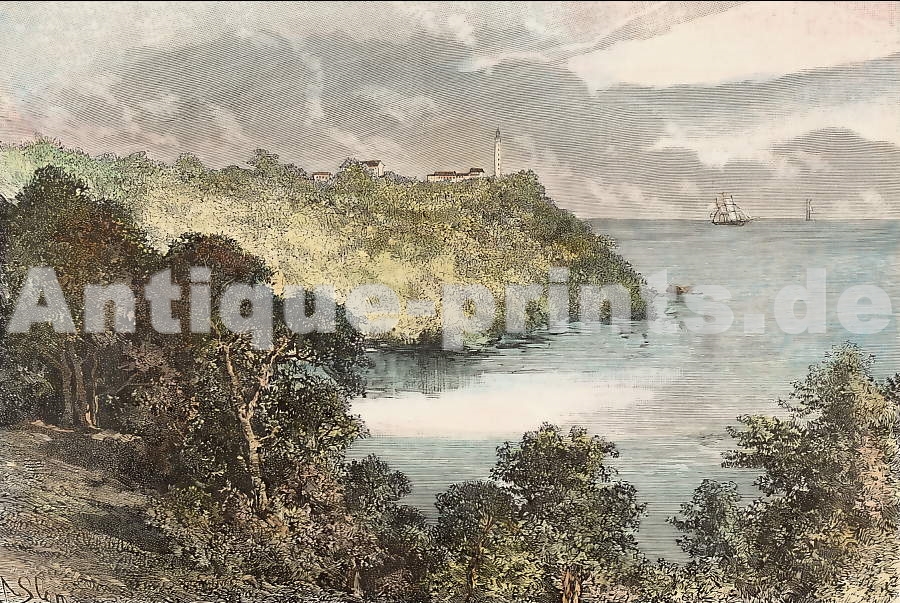 Brazil. Original steel engraving, engraved by Chaillot after C. Lalaisse. 1838. Very good condition. Hand-coloured. 13x9cm. Matted.