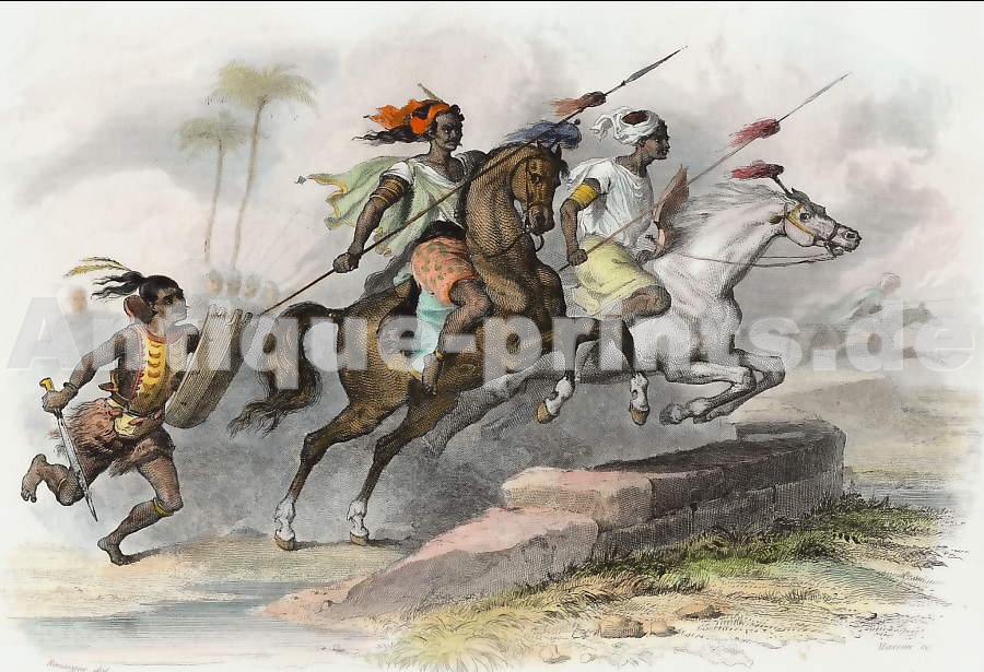 Chile. Original steel engraving drawn by J. Arnout. 1840. Very good condition. Hand-coloured. 14x9cm. Matted.