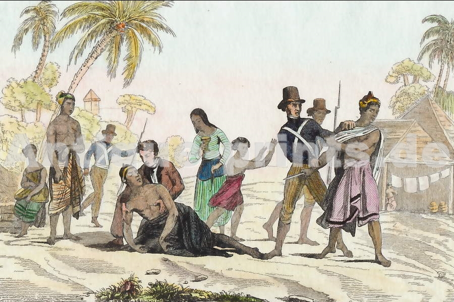 Java. Original steel engraving, engraved by Beyer and C. Lalaisse after A. Rouargue. 1846. Very good condition. Hand-coloured. 16,5x10,5cm. Matted.