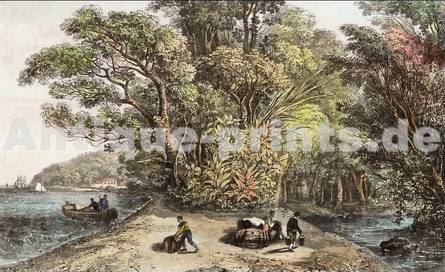 Neuseeland. Stahlstich von Boisseau nach Danvin. 1837. Sehr guter Zustand. Handkoloriert. 14x8cm. Mit Passepartout.