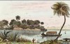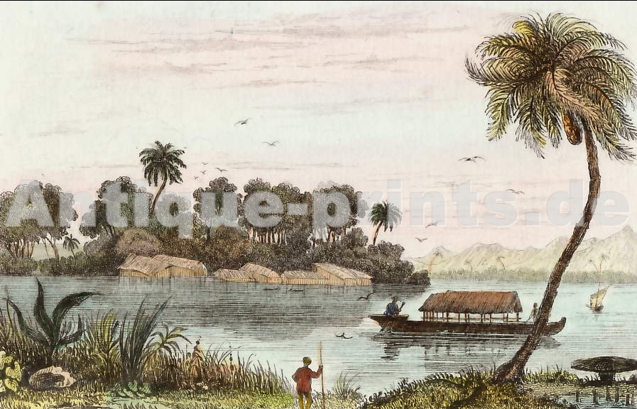 India. Original steel engraving, engraved by W. Edwards after A. de Valentini. 1853. Very good condition. Decorative border. Hand-coloured. 16,5x13,5cm. Matted.