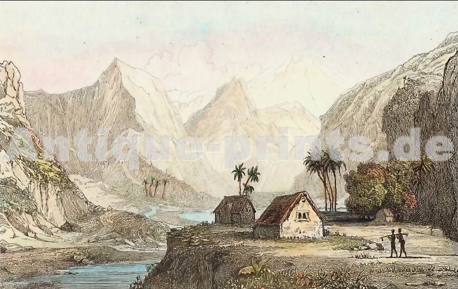 Malaysia. Original steel engraving drawn by Danvin, engraved by Chollet. 1836. Very good condition. Modern hand colouring. 14x8,5cm. Matted.