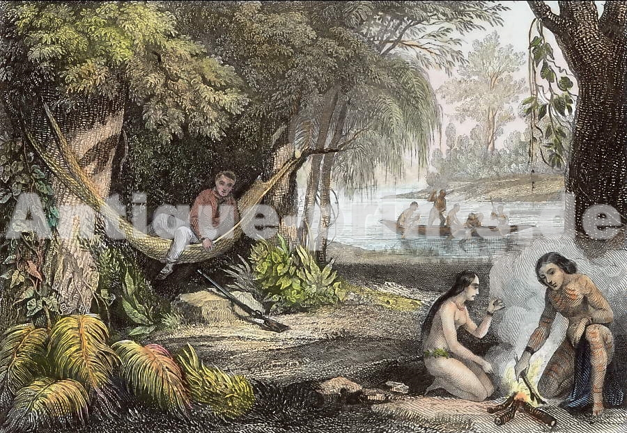 Afrique du Nord. Gravure sur acier par E. Rouargue et A. Rouargue. 1853. Très bon état. Aquarellage d´origine. 16,5x12cm. Montée sous passe-partout.