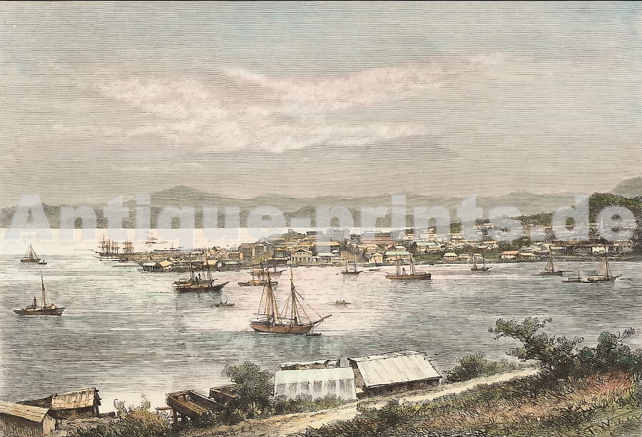 Iles Tonga. Gravure sur acier, gravée par Montaut d´après Danvin. 1837. Très bon état. Aquarellée à la main. 14x8,5cm. Montée sous passe-partout.