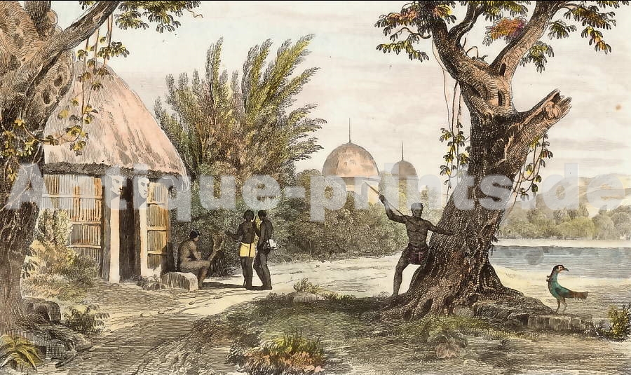 Nouvelle Calédonie. Gravure sur acier, gravée par Chollet d´après Danvin. 1837. Très bon état. Aquarellée à la main. 14x8,5cm. Montée sous passe-partout.