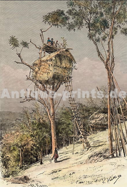 Tahiti. Gravure sur acier dessinée par Danvin. 1836. Très bon état. Aquarellée à la main. 14x9cm. Montée sous passe-partout.