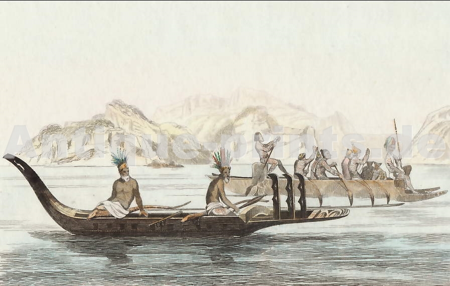 Iles Tuamotou. Gravure sur bois gravée par A. Kohl d´après P. Langlois. 1889. Bon état. Aquarellée à la main. 19x13cm. Montée sous passe-partout.
