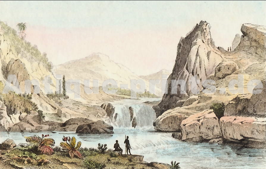 Liberia. Original wood engraving drawn by A. Slom, engraved by A. Khol. 1887. Very good condition. Hand-coloured. 19x13cm. Matted.