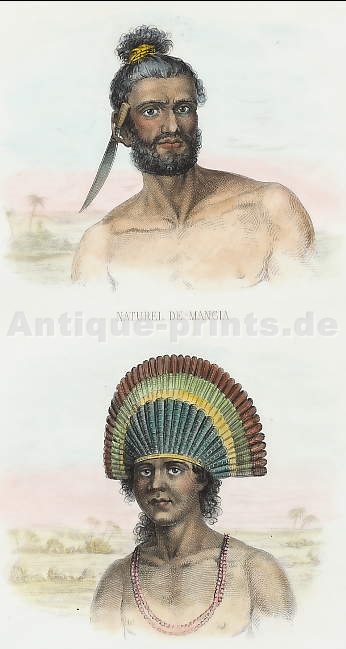 Papua New Guinea. Original steel engraving drawn by Danvin, engraved by Massard. 1837. Very good condition. Hand-coloured. 14x9cm. Matted.