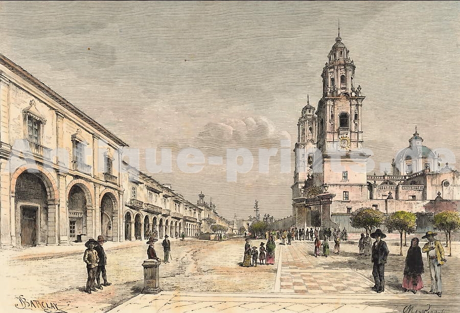 Chine. Gravure sur bois, dessinée par T. Weber. 1882. Rousseurs dans les marges. Aquarellée à la main. 19x13cm. Montée sous passe-partout.