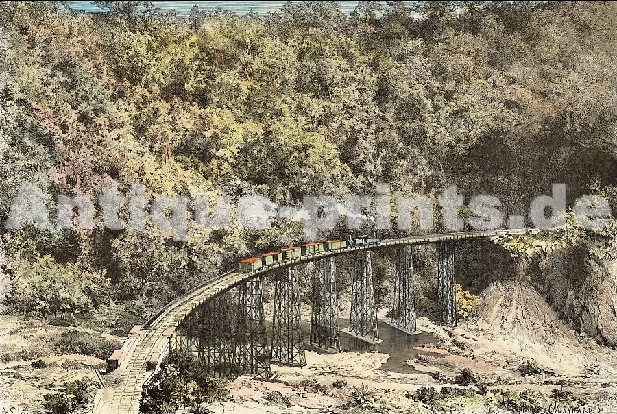 Mali et Guinée-Bissau. Gravure sur bois. 1844. Bon état. Aquarellage d´époque. 17x11cm. Montée sous passe-partout.