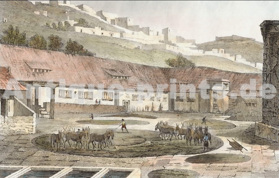Afrique du Sud. Gravure sur bois, gravée par Hildibrand d´après G. Vuillier. 1888. Légères rousseurs dans les marges. Aquarellée à la main. 19x13cm. Montée sous passe-partout.