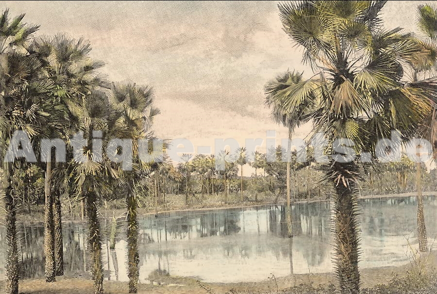 Brésil. Gravure sur bois dessinée par T. Taylor. 1894. Bon état. Aquarellée à la main. 19x13cm. Montée sous passe-partout.