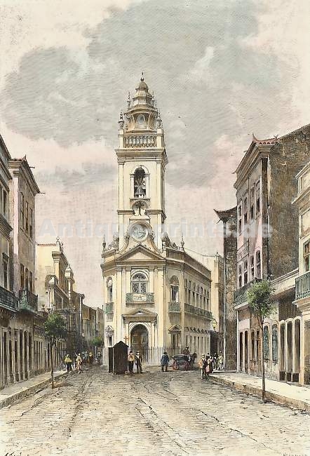 Brésil. Gravure sur bois, gravée par C. Maynard d´après A. Slom. 1894. Légères rousseurs dans la marge inférieure. Aquarellée à la main. 19x13cm. Montée sous passe-partout.