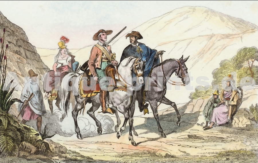 France. Original steel engraving drawn and engraved by T. Doherty. 1845. Very good condition. Modern hand colouring. 14,5x10cm. Matted. .