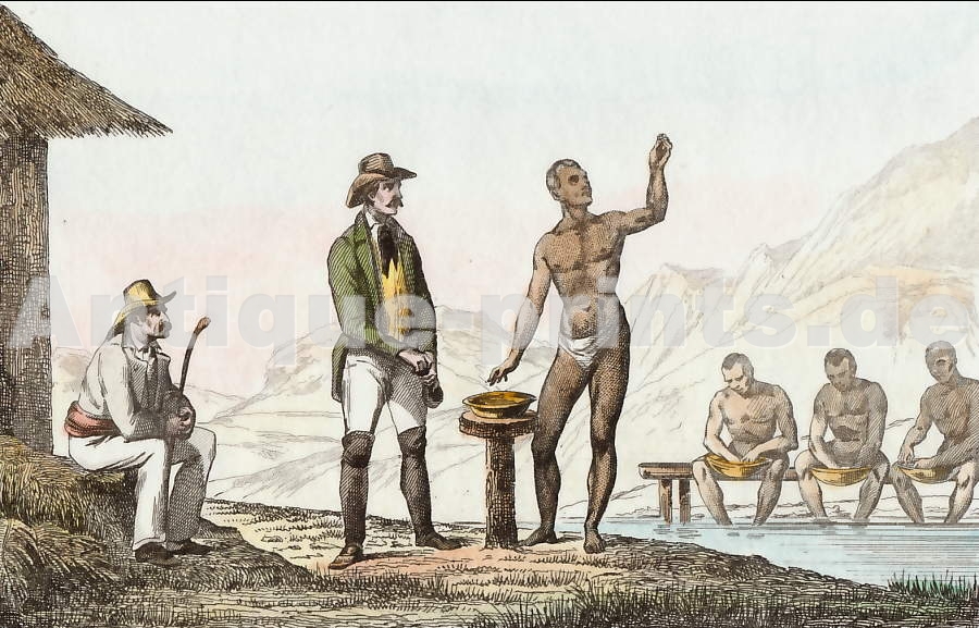 Brésil. Gravure sur acier, gravée par Pannier d´après Vanderburch. 1838. Très bon état. Aquarellée à la main. 14x9cm. Montée sous passe-partout.