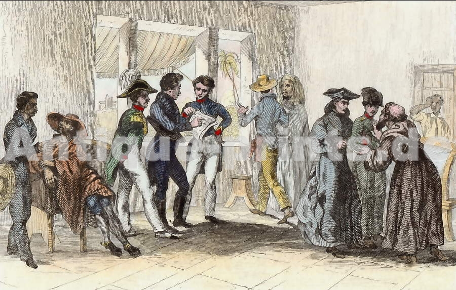 Brésil. Gravure sur acier, gravée par Alfred d´après Danvin. 1838. Très bon état. Aquarellée à la main. 14x9cm. Montée sous passe-partout.