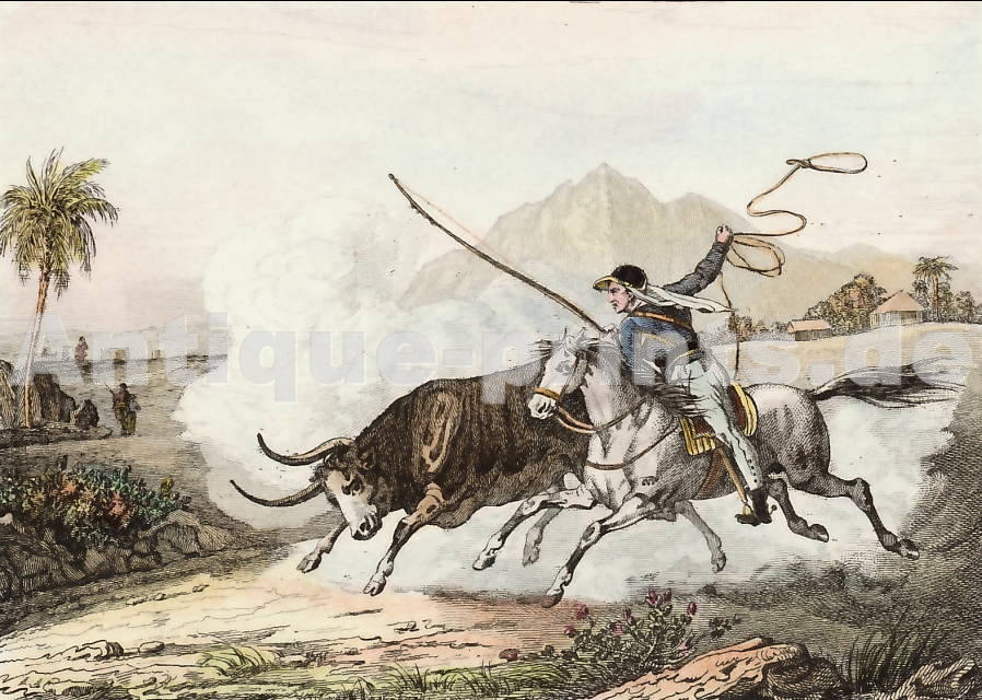 Chili. Gravure sur acier, gravée par Monnin d´après Vernier. 1840. Très bon état. Aquarellée à la main. 13,5x9cm. Montée sous passe-partout.