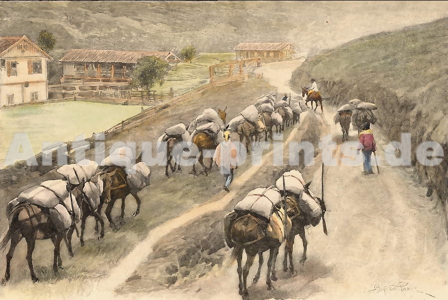 Brésil. Gravure sur bois, gravée par Maynard d´après T. Taylor. 1890. Très bon état. Aquarellée à la main. 18,5x12,5cm. Montée sous passe-partout.