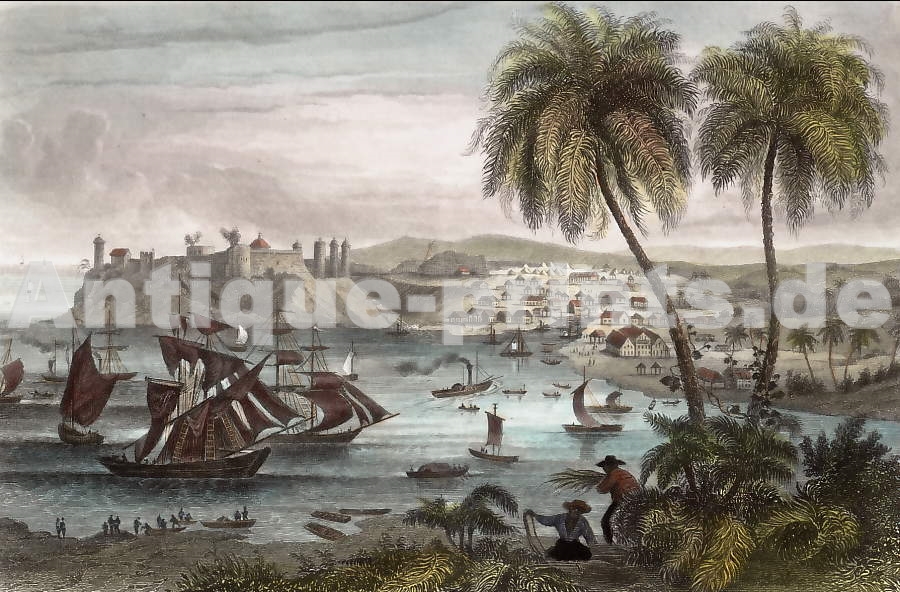 Panama. Original wood engraving drawn by A. Slom, engraved by F. Méaulle. 1878. Good condition. Hand-coloured. 19x13cm. Matted.