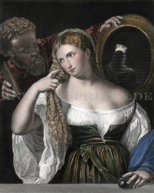 Stahlstich von D. J. Pound nach Titian. ca 1850. Guter Zustand. Handkoloriert. 16,5x13,5cm. Mit Passepartout.