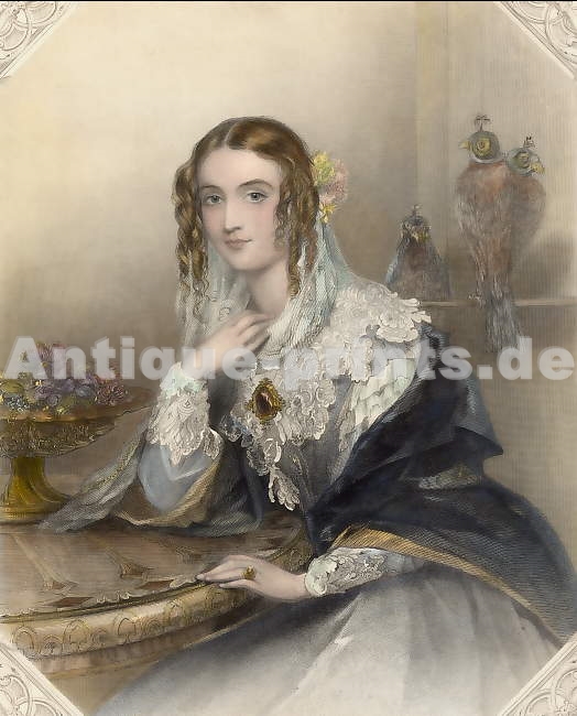Varia. Original steel engraving, engraved by H. Cook after Harper. ca 1835. Very good condition. Hand-coloured. 11x9cm. Matted.