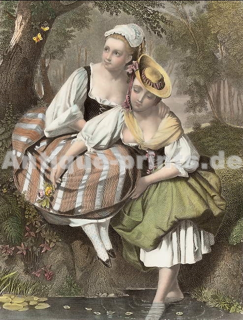 Genre. Lithographie dessinée par L. Lassalle. 1852. Bon état. Aquarellage d´origine. Bordure décorative.13,5x10cm. Montée sous passe-partout.