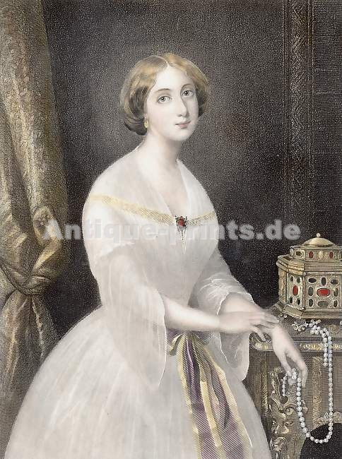 Varia. Gravure sur acier gravée par Hall d´après J. J. Jenkins. 1837. Légères rousseurs dans la marge inférieure. Aquarellée à la main. 15,5x11,5cm. Montée sous passe-partout.