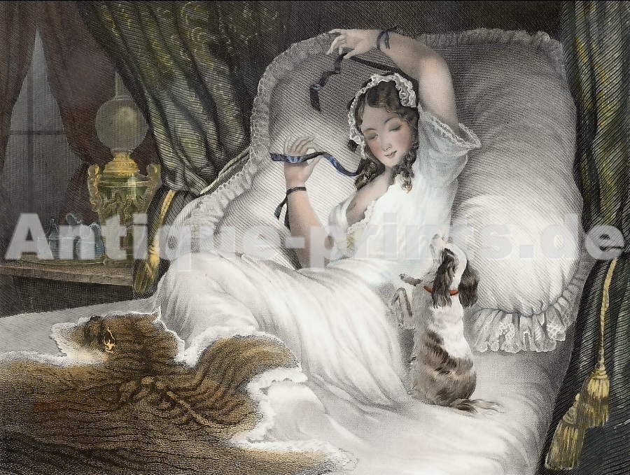 Original steel engraving drawn by De Varria, engraved by F. Bacon. 1832. Slightly soiled in the margins. Hand-coloured. 11x8,5cm. Matted.