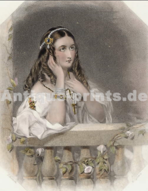 Varia. Gravure sur acier, gravée par W. H. Mote d´après Fisher. 1853. Très bon état. Bordure décorative. Aquarellée à la main. 16,5x13,5cm. Montée sous passe-partout.